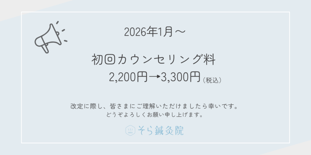 いつもそら鍼灸院をご利用いただき、誠にありがとうございます。