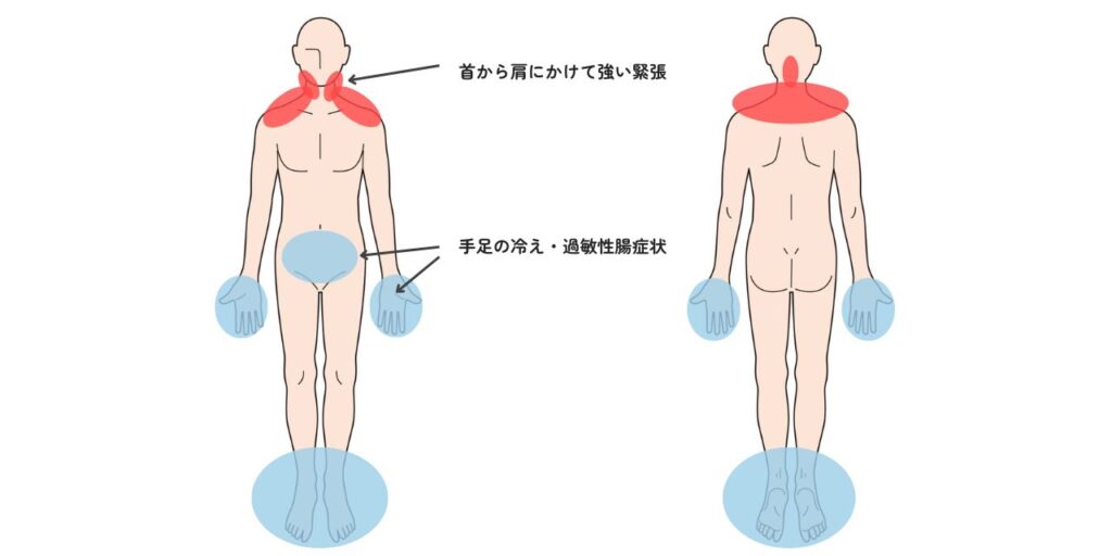 また、呼吸の浅さ、手足の冷え、軽度の過敏性腸症状もみられました。