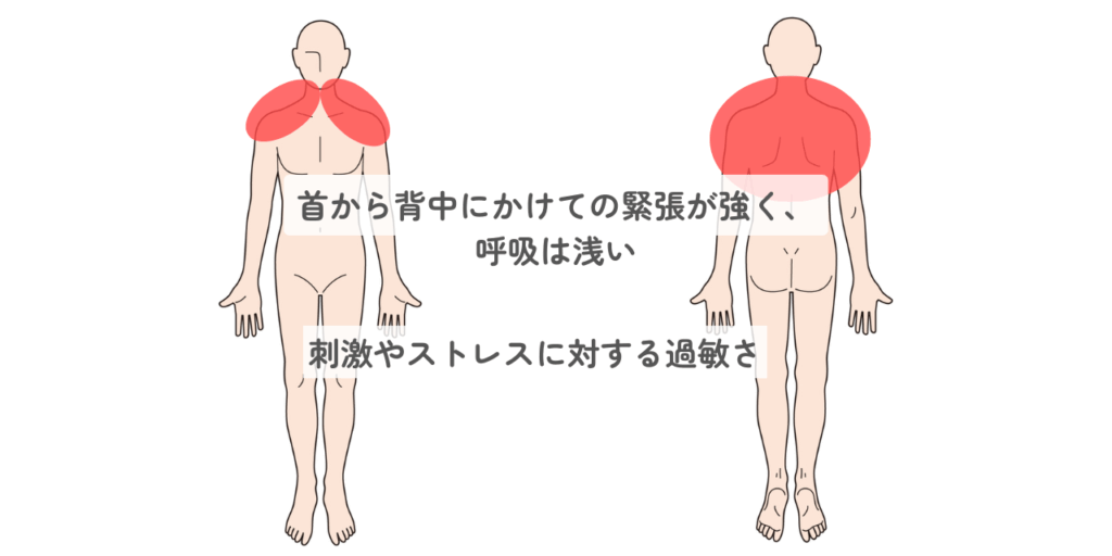 首から背中にかけての緊張が強く、呼吸は浅く、血圧はやや低めでした。